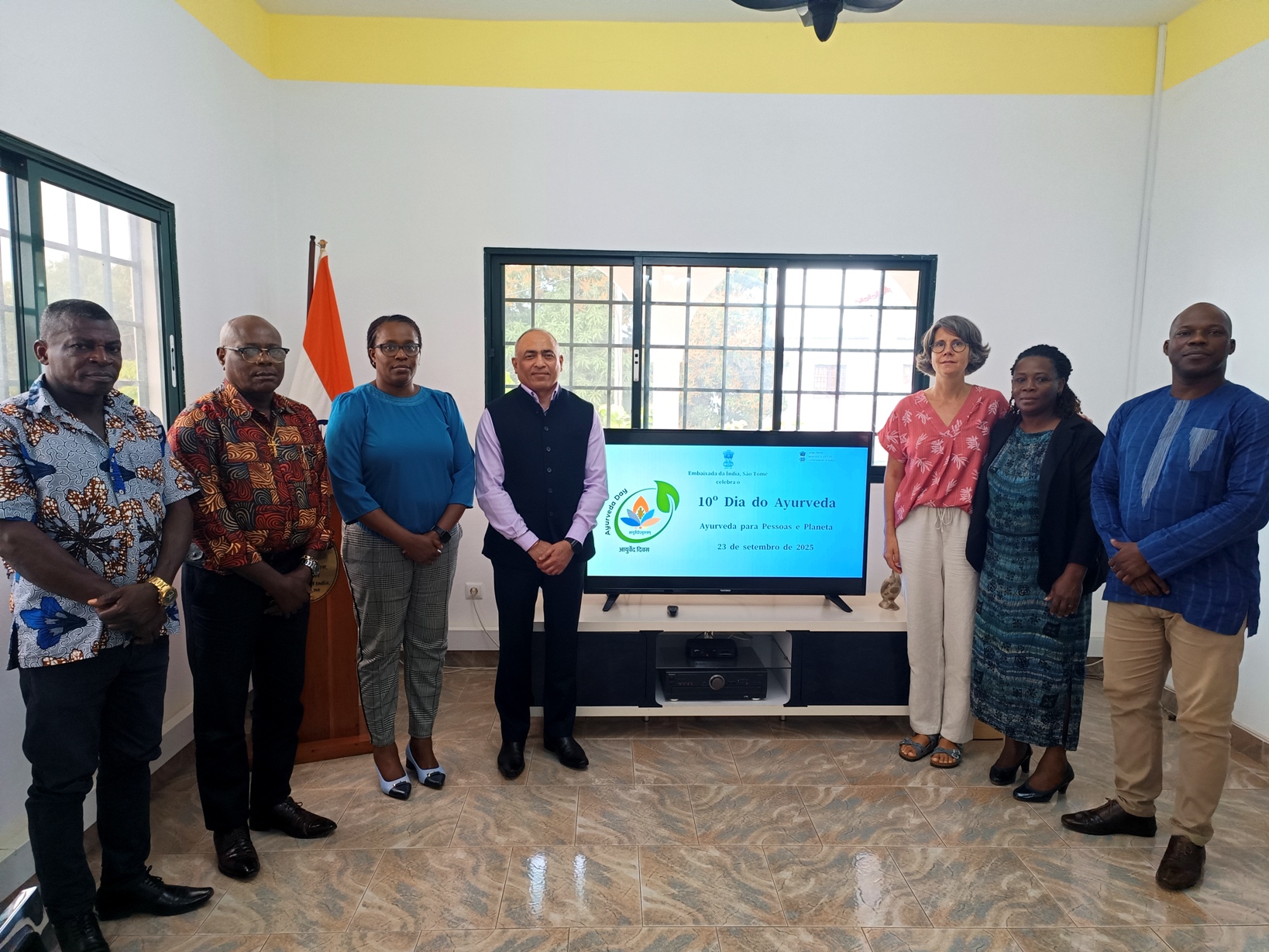 Embassy of India, Sao Tome celebrated the 10th Ayurveda Day on 23 September 2025. The theme for Ayurveda Day 2025 is, “Ayurveda for People & Planet". A workshop was organized with senior officers from the Ministry of Health of Sao Tome & Principe and practitioners of traditional medicine. Cooperation between Ayurveda of India and traditional medicinal system of Sao Tome & Principe was discussed.